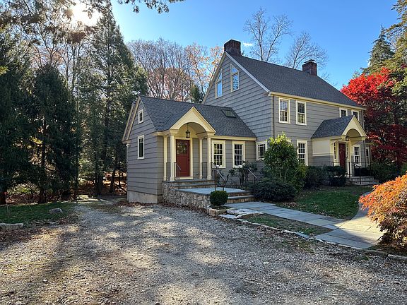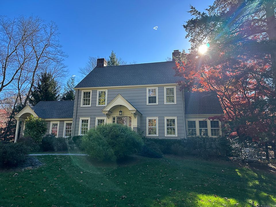 This gracious Colonial in the heart of coveted Old Hill has been home to one family for 47 years. The welcoming foyer with its sweeping staircase is flanked by a generously sized dining room with fireplace and living room with fireplace and custom built-ins. A paneled study and a sun room provide versatile spaces for work or relaxing.A thoughtfully designed recent addition enhances the home's functionality with a spacious mudroom entry, butler's pantry with sink and dishwasher, a large laundry room with sink, and a walk-in pantry. The chef's kitchen features a huge granite island, high end appliances, vaulted ceiling and custom windows that bring in natural light and opens to the family room, creating a warm central gathering space.The property offers mature plantings, a charming brook, and an expansive lawn bordered by established trees. A generous deck overlooks the landscape and provides an ideal setting for outdoor dining and entertaining.The second floor includes a primary bedroom with built-ins and full bath, along with three additional bedrooms and a hall bath. A finished third floor offers a playroom and office. A classic Old Hill residence with character, light, and room to live comfortably both indoors and out.