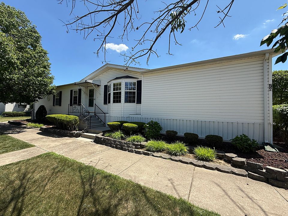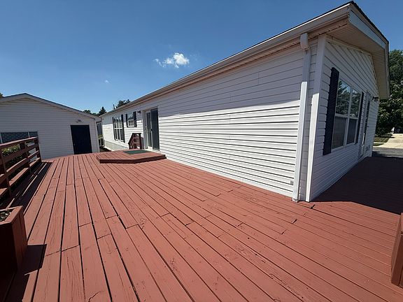 Large Corner Oversized lot with a huge wrap-around deck recently painted (Also, this home is located on one of Maple Brook's rare Corner lots with home facing the street.) This Top selling 28' X64' Palm Harbor Otter Creek model is a 7 room home. FR/LR/DR is drywalled w/vaulted ceilings. Walk-A-Bay window in the Living Room. Newer $7000 Gilkey slider with inside micro blinds in kitchen leads to a big wrap-around deck. Master features private bath w/deep soaking tub & separate shower. Laundry/Mud Room w/separate entrance. Walk-in closet in master bedroom and walk-in pantry in the kitchen. New motor in furnace. Roof done in 2019 along with the water heater. Newer rear storm door. Please be advised effective August, 2024 per DOJ vs NAR settlement all prospective buyers must complete an Exclusive Buyer's agreement with ANY agent before being shown ANY HOMES LISTED IN THE MLS