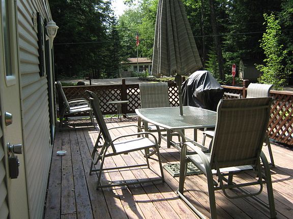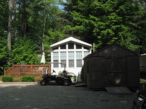 Minutes to MA border, this well maintained 2004 Canterbury Bayview 2 bedroom recreational mobile is a 'must see'. Central air, cathedral ceilings, applianced kitchen plus large deck overlooking nicely wooded yard with firepit. Low yearly $1200 fee includes water, sewer, electricity, trash removal and use of all the amenities;inground pool, tennis court, bocci court and Sip Pond for swimming, fishing, and boating. Save the high price of gas and vacation close to home. The best of both worlds.