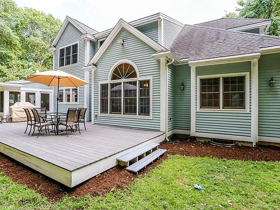 Built in 2000, on a lovely wooded 3.91 acre lot w/lots of stone walls, a backyard orchard with over 50 fruit trees, two chicken coops, and a private field surrounded by woods on 4 sides. This beautifull 12rm Contemporary Colonial will give you all the space you need for a growing family. 5 bedrms, 3.5 baths, 3 car garage, and nearly 5000 sf of living space. Open concept thru out this lovely home. 2 story foyer with 2nd flr balcony, formal dining rm, large kitchen with maple cabinetry, cathedral ceiling, center island, granite, skylight, and French doors that lead to a 3 season porch and large deck. Cath ceiling fam rm with built in rustic oak slab shelves, recessed lights and ceiling fans. Hardwood floors thru out 1st flr. 1st flr master w/large bath and walk in closet. 4 bedrooms and bath on 2nd flr. Lower level finished with large closet, exercise rm, full bath and workshop. Solar power, wood stove, central air, vacuum and alarm. Close to downtown, Cranes beach, Bailek park, the train station, and Ipswich High school.