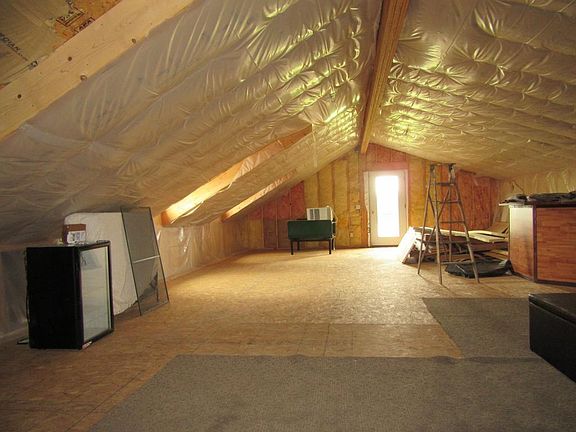 Huge storage building and garage, cedar log siding has space for 3 cars. Loft area can be used for storage , electricity, heat ,insulated . Lot is huge 2.35 acres , so many possibilities. priced at just 124,000