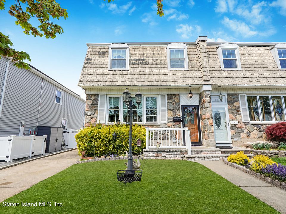 Welcome to 57 Plymouth Road. Pretty as a picture describes this warm and inviting One Family extra wide (21x39) semi. Conveniently located to shopping plazas including SI Mall & transportation, this home features lovely front porch, 4 bedrooms, full + half baths, formal Living room, formal Dining room with built-ins and SGD to a well-maintained park-like yard nicely landscaped with pavers - perfect for entertaining - plus brand-new shed, and a Bilco door leading from basement to yard, Eat In Kitchen with granite countertops, finished basement with large functional workshop. Hardwood floors throughout, abundant storage with lots of closet space. Newer roof (2022), furnace and central air 6 years young. Spacious Master bedroom with walk in closet + 3 additional bedrooms. Attic with pull down stairs for additional storage. Come take a look, you will not be disappointed.