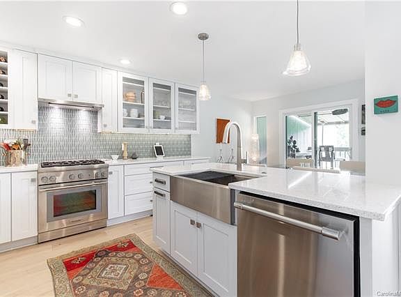Water views galore! This modern style renovated condo features lake access from your back door!Lake life will never be better in a maintenance free condo with pool within walking distance from your door. This chef inspired kitchen features Kitchen Maid Custom Cabinetry (to ceiling), extra deep drawers and built in pull outs and wine storage, glass front doors, pull out recycling,dove white with Seaside blue island cabinets. Thermador Emerald Stainless Dishwasher- whisper quiet Stainless disappearing glide out hood Kraus Steel Farmhouse sink with integrated drying rack and cutting board Summit Stainless and Glass door wine cooler Artistic mercury glass pendant lights Under counter lights Quartz counter tops. Brand new doors and moldings. This is absolutely resort style living in a community with a marina, golf course, 3 acre private beach, community garden, dog park, gym, and 24- hour gated community with EMS onsite. The condo feature a private pool for condo owners.