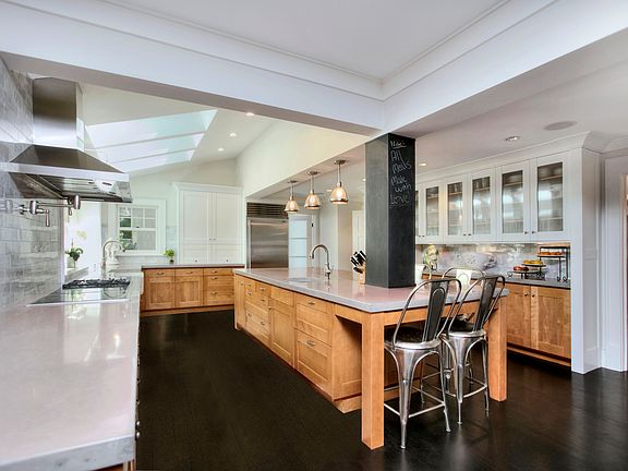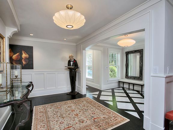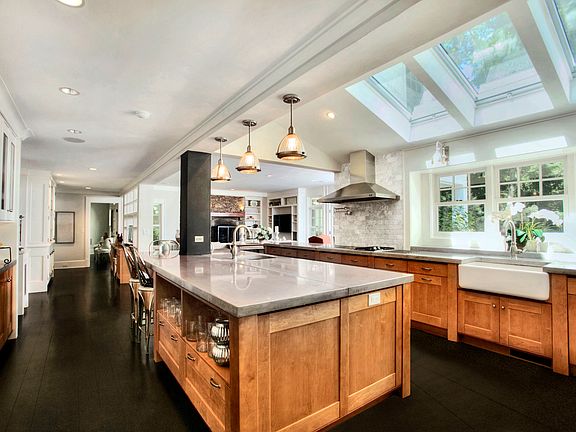 Gorgeous renovated 6 Bedroom Colonial with pool and spa on a quiet east-side cul-de-sac only 6 minutes to town and train, and 5 minutes to the elementary school. Architectural details include high ceilings, an open floor-plan, substantial moldings and millwork, built-ins in most rooms, an impressive and modern paneled den, a huge great room/custom eat-in kitchen with a natural stone fireplace, eating area, bar and butler's pantry, kitchen command station, and a mudroom. Up a few steps is a mid-level en-suite guest room and a huge bonus room. The master bedroom suite and all other additional bedrooms are spacious with multiple offices, play, or work areas. The walk-out lower level features a large mirrored exercise room with a sauna, steam shower, wine cellar, billiards room with a fireplace, and game room. The transition between the pool and the lower level is seamless, offering swimmers a changing area and full bathroom. The fenced-in backyard will entertain family and friends with a stunning pool, spa, outdoor fireplace, pizza oven, covered porch, stone terraces, and flower gardens. This exceptional home is move-in ready.