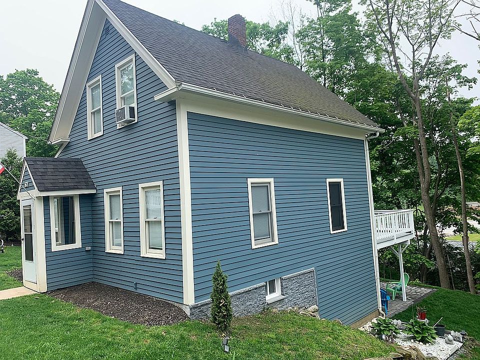 Come check out this totally renovated home, New kitchen with stainless steel appliances, new bathroom, new flooring in kitchen, living, dining room and family room. New wall to wall carpets in Bedrooms. New stairway treads and railing. Newly poured concrete in Basement. new heating system, hot water system. Freshly painted house, deck and trim as well as an oversized shed for all your storage needs. Gas heat with forced hot air. Water filtering system. In the final stages of construction, should be done in 2 weeks.
