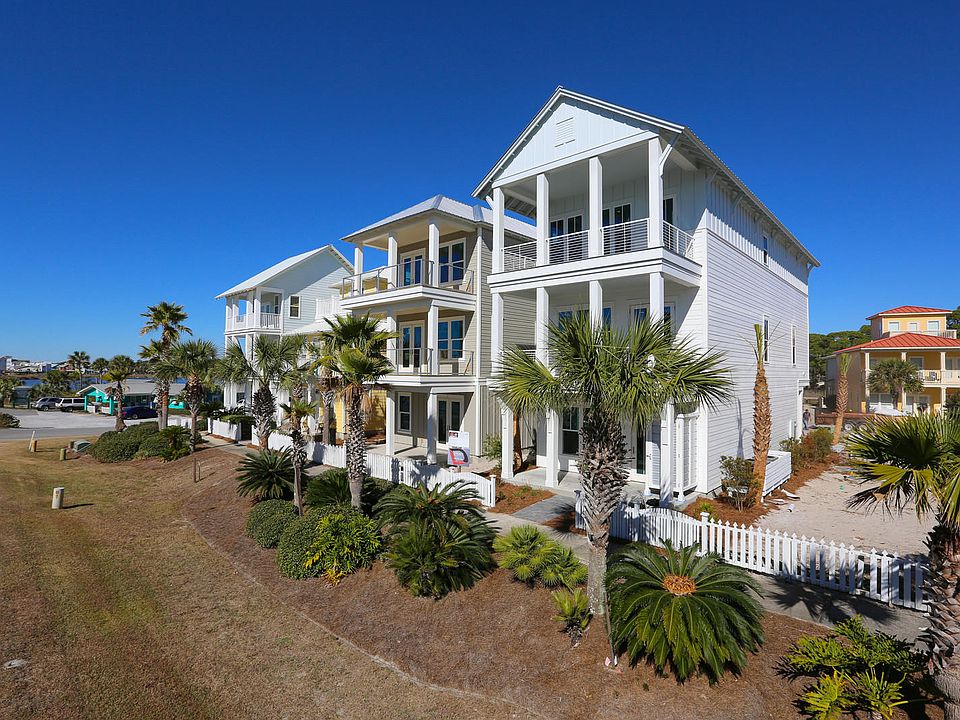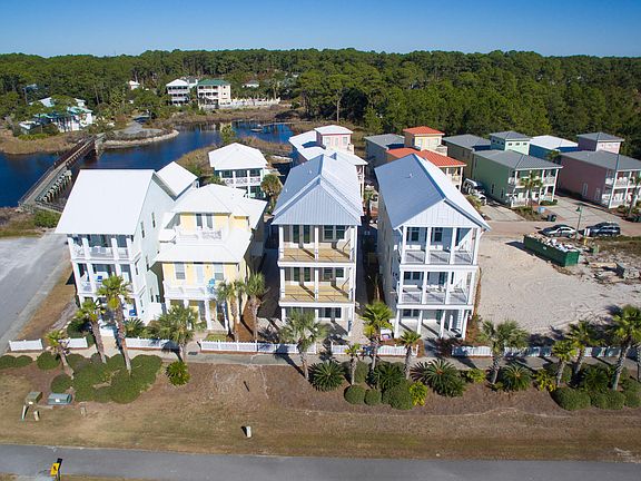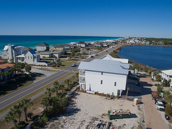 Brand new construction; a remarkable collaborative effort between architect and builder directly in front of the beach access. Tyler Doin, a renowned local architect, designed this original, 100% custom home with the finest quality materials and upgraded finishes. Wes Limbach, a reputable and meticulous builder, teamed up with Tyler to create this 30A Design & Development Concept Home. The brilliant layout of this home is designed for the best beach experience ever. The 1st floor has beautiful tile floors, a master suite with cypress beam ceilings, a laundry room, a large owner's closet, and a generous wet bar area off the 8' X 20' gulf side porch with cubbies, towel hangers, sink, ice maker and more importantly a beverage fridge to keep those beach coolers stocked! You have everything you need right at your fingertips to cross 30A and have a great beach day! Come home and shower in the private outdoor shower, throw your towels in the laundry, hang up your suits and get ready for a delightful sunset! The 2nd floor is the main living area with open great room, 2nd master suite, another laundry room and a powder room. This floor and the 3rd floor have stunning wire brushed walnut floors with tiled bathrooms and laundry room. The living room has striking cypress beams, an ice maker and wine cooler. Off the living room is a 10' X 20' porch with remarkable gulf views. The kitchen area has a 10' long island with a waterfall silestone countertop. All the appliances are high end including a 48" refrigerator and gas range with a hood. The 3rd floor has yet another master suite with cypress beam ceilings, a large bunk room with 3 sets of built-in bunks, a very large media room with tray ceilings which could be used as a 5th bedroom, another wet bar that has a beverage cooler, and astonishing panoramic views of the gulf and up and down 30A from the 10' X 20' covered porch. Additional features throughout the home include a garage, shiplap walls through all high traffic areas and the whole great room, tankless gas water heater, horizontal aluminum rails inside and out, wired for sound, security and the HVAC that can all be controlled via a phone app, 10' ceilings on all 3 floors, 3 barn doors that are custom designed cypress with sand blasted glass, custom tile accent walls behind each vanity and 8' doors with multi-lock systems. With this location and the home being designed to be a perfect lay-out for vacation rentals it will be a rental machine! The projection is over $138,000 for the 1st year. You are centrally located to the best dining, unique boutique shopping, art galleries, art festivals, outdoor concerts, bike paths and some of the most challenging golf courses the gulf coast has to offer. Easy access to Hwy 98, allowing you to explore the nearby cities of Destin or Panama City Beach, as well as, the Northwest Florida Beaches International Airport.