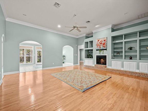CHARM, WARMTH, TRADITIONAL ELEGANCE in this Timberton exceptional one-story. Located on a level corner lot, with welcoming circle drive and side entry 3-car garage including a deluxe Storm Shelter. The fenced back yard includes a storage building and generator plus beautiful plants. The gracious foyer invites family and friends to the spacious Great Room, the formal living on the Right and gracious dining on the left with expansive 9'-12' ceilings and hardwood flooring. The carefully designed kitchen and casual dining room are just off the great room and open to the relaxing 8' x 34' back porch and the ''Always Comfortable Sunroom''. This split bedroom design by Jim Graf/Applewhite provides total privacy bath to the primary in-suite and the 3 Bds, located on the east wing. This much-loved home and neighborhood have been a joy to the current homeowners who have moved to be closer to family.