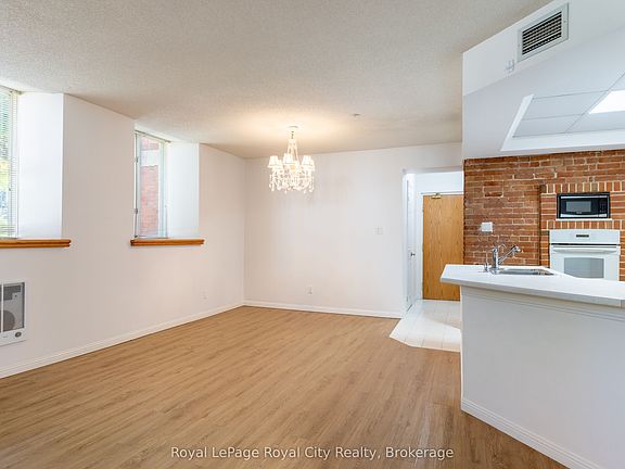 Centrally located within one of Guelph's most sought-after downtown neighbourhoods, unit 101 is a spacious one-bedroom plus den condo awaiting you. King Edward Place offers a simple and secure lifestyle within a charming former schoolhouse. Originally built at the turn of the last century and thoughtfully reimagined in the 1990s by the Shortreed family, this exclusive 9-unit condominium blends history with modern comfort. Natural light fills the space through seven oversized casement windows framed by 2-foot-thick walls, creating a sense of tranquility and timeless character. The kitchen features an exposed brick accent wall, complete with a built-in oven, adding to the units unique charm. The large primary bedroom includes a private ensuite with a jet tub, while the spacious living room offers a cozy gas fireplace as its focal point. A versatile den and additional bathroom complete the thoughtful layout, making this condo both practical and inviting. This building has full elevator access. 2024 Gas and Hydro bills approx. $2400.00.