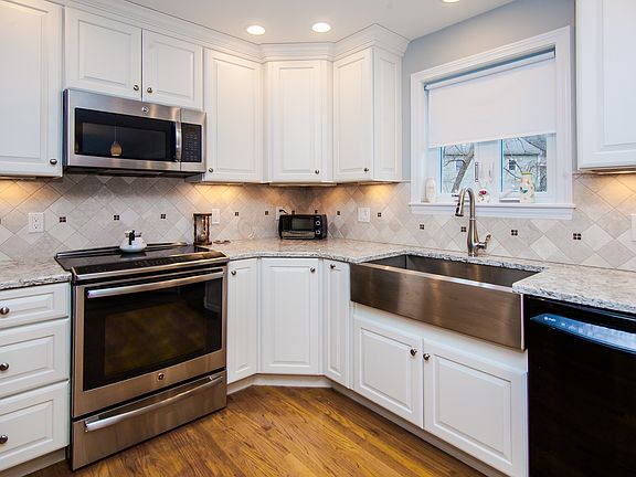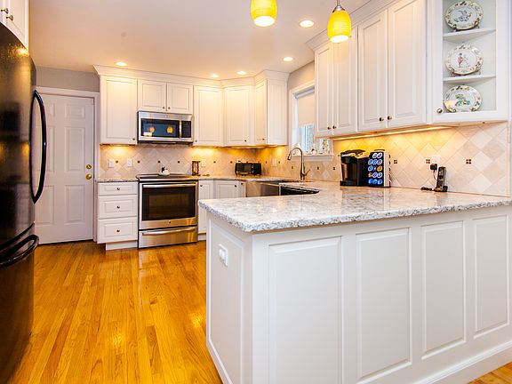 Quietly nestled at the corner of Swains Pond Ave and Maple Terrace in the desirable Mount Hood area of Melrose, you'll find this beautiful 3 bedroom, 2 bath cape with attached two car garage. Built in 1995 and recently renovated main level features open concept kitchen and dining. The modern kitchen offers newer cabinetry, quartz countertops, and large stainless steel farmers sink. The open dining area leads to a very relaxing sunroom to enjoy the private surroundings that this property has to offer. The main level also includes a master bedroom suite with renovated master bathroom and plenty of closet and storage space. Main level offering hardwood floors throughout, while the living room features a beautiful fireplace and cathedral ceilings. On the second floor there are two bedrooms with ample closet space and a full bathroom. The basement offers laundry and storage space as well as a finished bonus room with wall to wall carpeting, recessed lighting, closet, and exterior walk out.