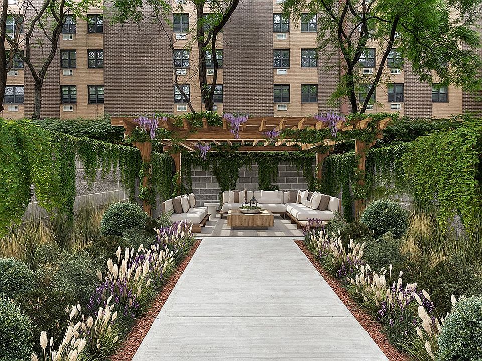 Experience luxury Harlem living at its finest, where timeless interiors seamlessly extend into an enchanting outdoor sanctuary.