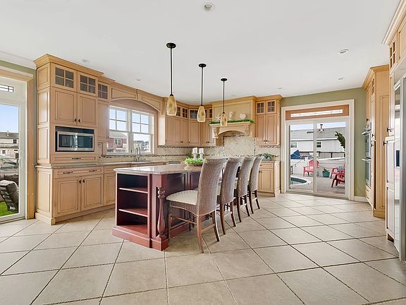 Magnificent waterfront home with unobstructed New York City skyline views. This spectacular Broad Channel home sits on a 75 x 100' lot and offers striking views from almost every room! Completely and thoughtfully renovated in 2010, this home is move-in ready and waiting for you to call it your own! The beautiful exterior, with its perfect manicured garden and pretty front porch will have you falling in love before you even enter the home. Upon entering, you are greeted by a beautiful foyer with a double height ceiling that opens to a formal dining room, large eat-in kitchen with sliders out to your private pool and expansive living room. The open living room is surrounded by five oversized windows, all with water views, and has a wood burning fireplace that is set in a rustic stone mantle. This room flows right into the massive eat-in-kitchen with two sets of sliding doors out to your outdoor spaces. Centered by a large island, this kitchen boasts beautiful granite counters, 6 burner Thermador stove and separate Thermador double wall oven, dishwasher, large double door refrigerator and a bonus wine fridge. There is ample cabinet and counter space for all of your entertaining needs. From the kitchen you can head right into the formal dining room that is accented with striking moldings and five sunny windows. This floor also boasts a gorgeous full bathroom with stained glass and marble and stone tiles. As you ascend up the steps to the second floor of this home you will be wowed by the stunning great room which has a gas fireplace, beautiful hardwood floors and dramatic oversized French doors that lead out to a deck that has unobstructed views of Jamaica Bay and the spectacular New York City skyline. Off of this room there is another large, full bathroom that also has a washer/dryer. The master suite is enormous with two huge closets, one of which is a walk-in, private terrace with French doors and water views and a large master bathroom that boasts pretty marble tiles, a jetted tub and a large, separate glass shower. Two more spacious bedrooms are on this floor and they are both accented with a large closet and beautiful textured suede paint. The third level of this home is completely open with vaulted ceilings with an abundance of storage space. The owners are currently using this space as a media room and a spacious gym. The outdoor space of this home is exceptional! Starting from your beautiful wraparound front porch you can head to the side of the home where you will find a private pool that is surrounded by a deck and has easy access to the large yard which is in the back of the home. The yard gives easy access down to your own private boat dock and float where you can head off into Jamaica Bay and watch the beautiful sunsets each evening. Add in an oversized garage that can be accessed from either the exterior or the interior of the home, central air, central vac, radiant heat on the entire first floor as well as both bathrooms on the second floor, beautiful crown moldings and custom shutters throughout and you literally have it all! Located a short distance to Rockaway Beach as well as public transportation which includes the Rockaway Ferry, this home is not one to be missed!