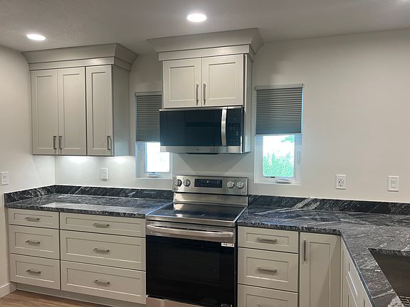 Extra storageNew insulationBrand new designer kitchenUnder counter lightingTile and lvp flooringNew double pane windowsCustom granite countertops