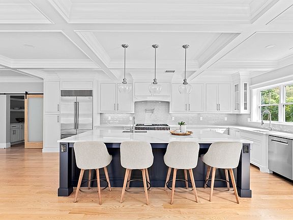 STUNNING new construction in Hingham close to Black Rock CC and just minutes to Derby Street Shops, Hingham Village, Commuter ferry, train, Rt 3A & more. Sun drenched home masterfully built, exceptional quality. Finishes include: 6’ wainscoting, coffered ceilings, custom millwork, built ins, floating shelves. Spectacular chefs kitchen sparkles w/cascading natural light, quartz countertops, 10’+ island, custom cabinetry, 48” Wolf range, Wolf drawer microwave, wine fridge & 42” Sub-Zero refrigerator. Secondary refrigerator in adjacent walk-in pantry. FF includes office/library, mudroom with 2 built in bench seating areas and ample closet storage. Large FF In-Law suite with full bath. Upstairs boasts laundry room and 4 ensuite bedrooms. Luxe primary bedroom w/ Carrara marble, spa like soaking tub & 2 walk in closets. HUGE finished LL w/ full bath, playroom, home theater or gym. Highest level of construction, 2 Navien units, Trex decking, Hardie siding, Azek trim. MOVE RIGHT IN!