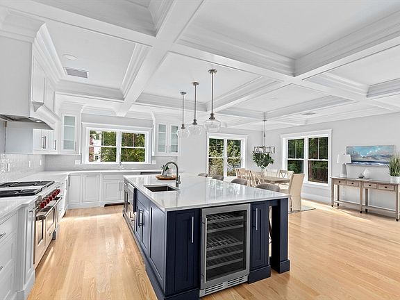 - Features: Coffered Ceiling(s), Flooring - Hardwood, Pantry, Countertops - Stone/Granite/Solid, Countertops - Upgraded, Kitchen Island, Wet Bar, Cabinets - Upgraded, Open Floorplan, Recessed Lighting, Wine Chiller, Gas Stove, Lighting - Pendant, Crown Molding