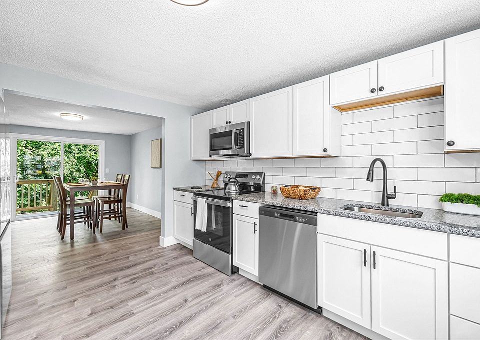 Nestled within the residential area of Ware, MA, this inviting single-family attached townhouse residence offers a delightful opportunity to embrace comfortable living in a ready-to-move-in condition. The heart of this home resides in its beautifully appointed kitchen, where culinary aspirations come to life amidst stylish shaker cabinets, elegant granite countertops, new stainless steel appliances, and a modern backsplash; this space is thoughtfully designed for both functionality and aesthetic appeal. The bathroom features a tiled shower, providing a refreshing and contemporary space to start and end each day. Step outside to discover a private outdoor haven, complete with a deck and patio, perfect for relaxing and entertaining, while the fenced backyard offers a sense of security and seclusion. The property also offers a peaceful woods view, creating a serene backdrop for everyday living. This property is a PUD. The HOA provides limited services and property coverage.