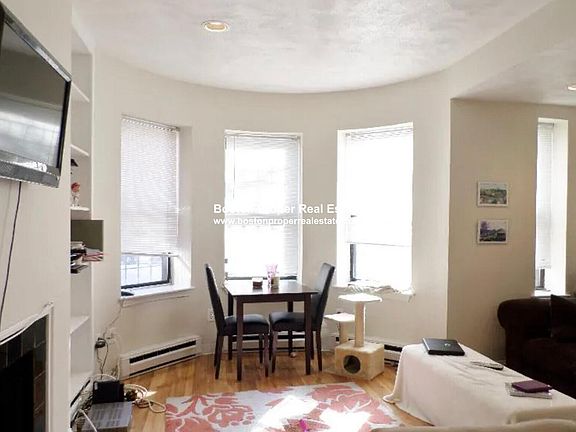 Very Sunny! Shows wonderfully 1st floor, 1 bedroom large enough for 1 or 2. 2 closets in bedroom Large living room with alcove and bow window. Alcove can be curtained off to make a split. New kitchen with dishwasher, built in microwave, disposal and lots of cabinet space. White tile bath. Hardwood floors and recessed lights throughout. Lovely rowhouse right next to the Whole Foods in Symphony. Close to NEU, BERKLEE, PRUDENTIAL CENTER, and everything Boston has to offer. 12 months