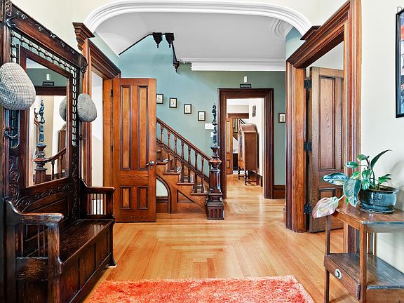 Gothic revival architectureOriginal charmHardwood and softwood flooringBuilt-in cabinetryIntricate woodworkCustomized libraryNewer appliances