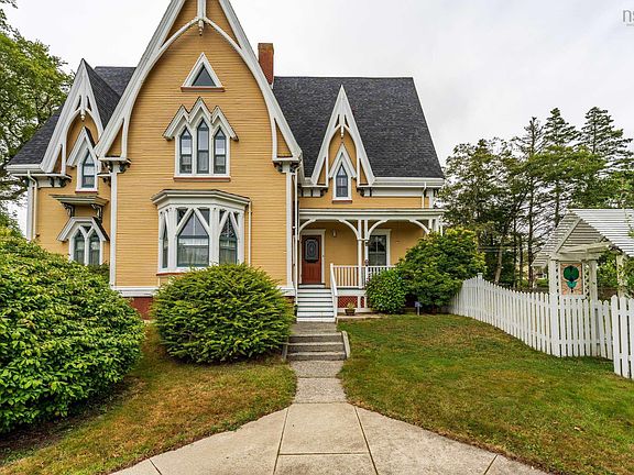 This is certainly one of Nova Scotia's most unique heritage properties. Located within walking distance of Yarmouth's shops and cafes, this striking example of Gothic Revival architecture stands as living proof of exceptional 19th-century craftsmanship. Inside, the home retains much of its original charm; featuring both hardwood and softwood flooring, built-in cabinetry, and intricate woodwork throughout. With 5 bedrooms and 2 1/2 bathrooms, the house blends style and function, lovingly renovated with 32 new windows, a customized library, and newer appliances. The upgrades extend beyond the interior, where you'll find a freshly-painted exterior (house and coach house) along with a restored backyard fence with multiple gates; all contributing to the property's curb appeal. This home offers so many options - as a spacious family retreat, a cozy well-established bed & breakfast, or many other home-based business opportunities. With its historic charm and modern upgrades, it's the perfect setting for you.