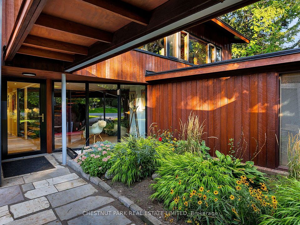 Ravine-kissed cul-de-sac corner lotTerraced gardensMultiple outdoor living zonesCold plungeFloor-to-ceiling windowsFloating staircaseCedar-lined ceilings