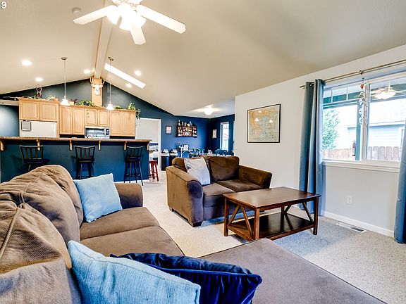 Charming 1701 Sq Ft, 3 bedroom, 2 bath home! Newer SS oven range and microwave, dining nook. Open concept floor plan, vaulted ceilings, fresh interior paint, and skylights. Gas forced air heating, covered sitting porch and private back deck, fully fenced yard, extra deep 2 car garage, raised beds and low maintenance landscaping!
