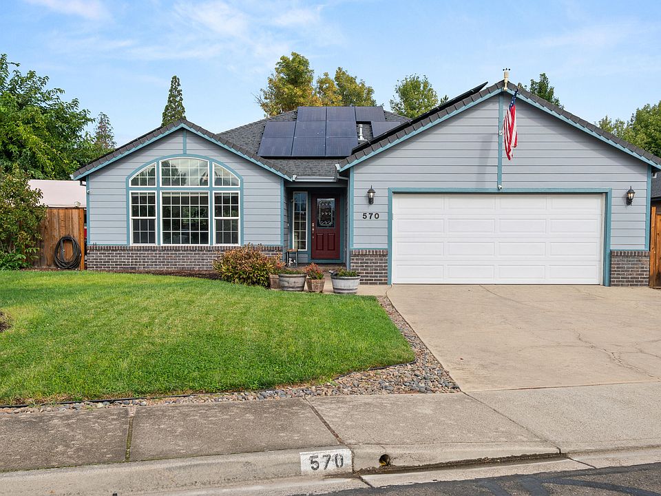 Welcome to this stunning maintained 2001 built home in premier Central Point Subdivision cul-de-sac. Boasting 1748 sq. ft of well designed living space. Large .36 acre of a lot, along side Jackson Creek, 2 car garage and large oversized RV adjoining property to the West Side. (Graveled Area) Solar System owned - Enjoy very small power bill. Open floor plan featuring a great room with vaulted and coffered ceilings. Laminate floor, kitchen remodeled in 2019 adding granite counter tops, butcher block on island. Tons of cabinetry and countertops. Large eating area open and bright to large windows out to the back. Relaxing master suit including walk in closet, double vanities. Covered patio leading to lg private fenced backyard. Don't miss out on this wonderful, maintained home and the opportunity to own. Priced to sell. Call soon for your private tour.