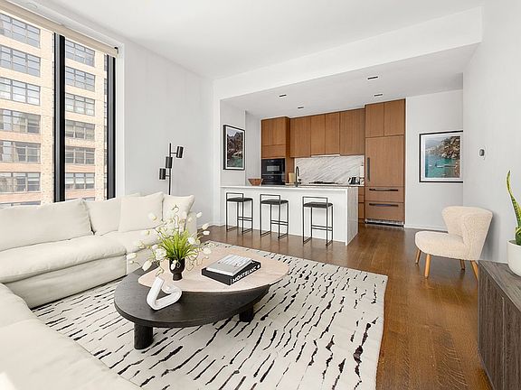 570 Broome is a collection of fifty-four contemporary residences from architect Tahir Demircioglu, with impeccable interiors by renowned Skidmore, Owings and Merrill. On the second floor, a private resident lounge with a game room opens onto a landscaped outdoor terrace. The fitness center includes Peloton bikes and a yoga studio, while a new wellness/spa center on floor two has multiple saunas (including infrared), a Plunge cold plunge, and private massage room. Additional services include a twenty-four-hour attended lobby, full-time super and building porter, and indoor bike storage.