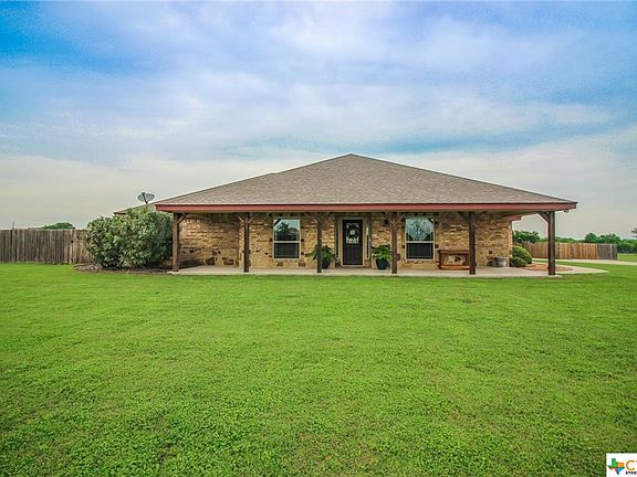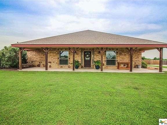 Ranch-style beauty in Academy ISD and only 5 miles to Temple. Sits on spacious 1.74 acre lot with lush green grass and landscaping. Enjoy your view from either the oversized front porch or the private covered patio in the back with access from the master suite. Concrete drive to side-entry garage also serves as a perfect place for a basketball goal. Open floor plan, granite countertops with ample space plus lots of cabinet space, and stained concrete floors. Oversized windows allow for just enough natural light, walk-in pantry, and laundry room with sink and folding area. This home is show ready and is being offered to view via virtual tour or in person. View via virtual tour (recommended first) and in-person with specific guidelines followed and will be provided by listing agent. All measurements approximate, please verify. Storage shed does not convey.