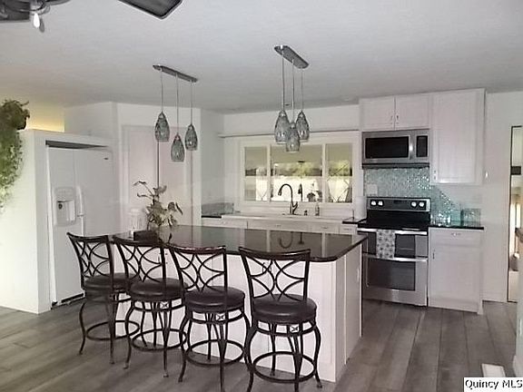 kitchen with island & barstools, granite countertops, large pantry, & appliances, concrete driveway 20 x 36, enclosed back porch area 24 x 28 with metal roof (current owners used as a family room), custom cabinetry, master bedroom has carpet & hardwood flooring, walk-in closet, master bath (shower only - no tub), hall bathroom has tub/shower combo, some unique woodwork, any remaining TVs w/convey * Owners previously had an outdoor woodstove that they used for heat. They took it out & installed a new LP gas w/electric heat pump furnace in 2020.
