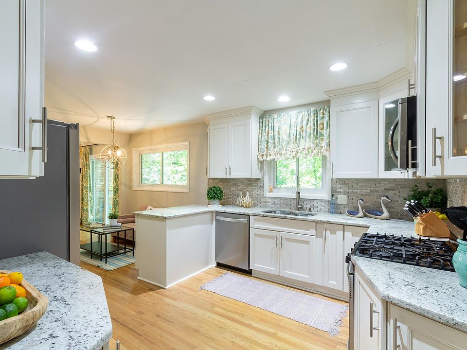 Fully Furnished! Beautiful Renovated Ranch Home Conveniently Located near Chastain Park. Four Bedrooms, Three Full Bathrooms, One Guest Powder Room, Welcoming Entry Foyer. Open Plan Living Room w/ Room for Dining Area. Gourmet Kitchen - Granite Counters, Chic White Cabinetry, SS Appliances, Gas Range, Breakfast Bar & Breakfast Area. Family/Keeping Room w/ Wood Burning Fireplace. Spacious Primary Bedroom w/ En-Suite Bath - Marble Vanity & Frameless Shower. Two Guest Rooms w/ Shared Bath. Finished Terrace Level - Guest Suite, Living Room & Wetbar w/ Service Bar. Large Entertainment Deck, Private Wooded Yard & Two Car Garage.close to Highways, hospitals and Film Studios.