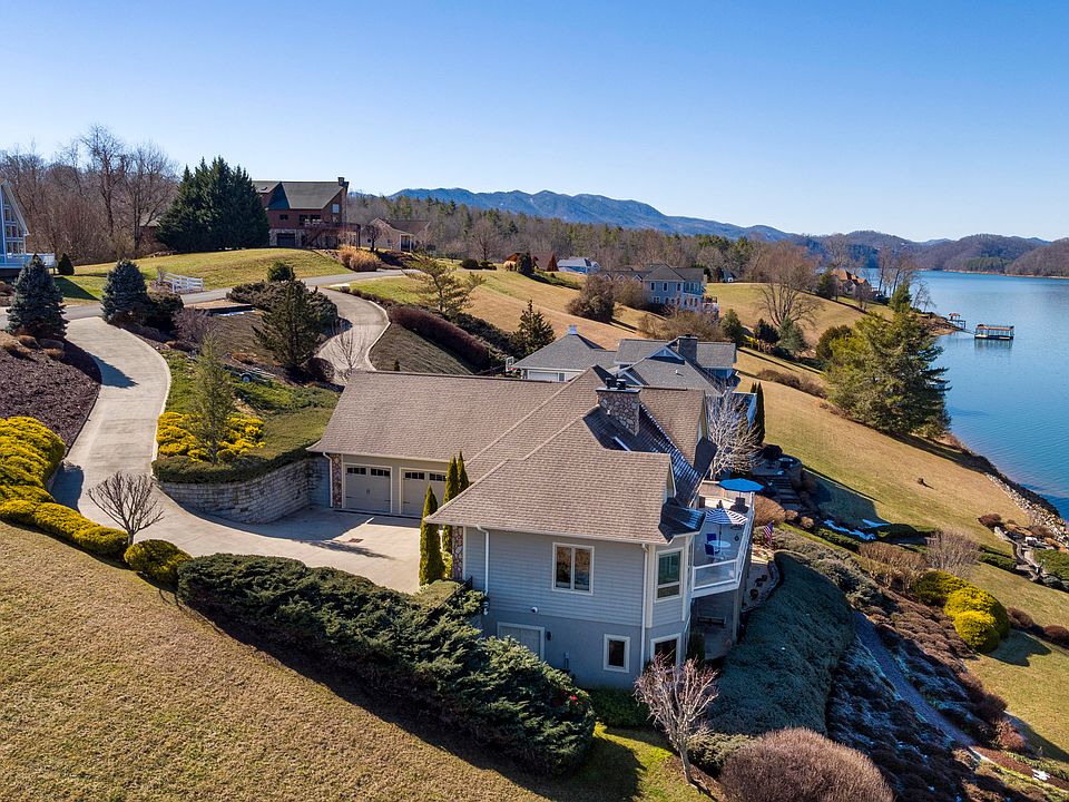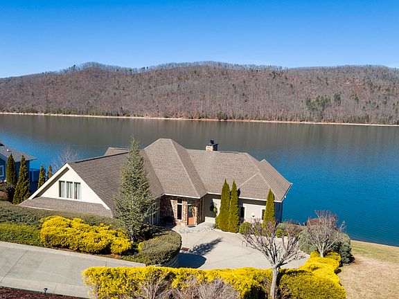 Set in Watauga Lake's premier enclave, the Harbour, this contemporary lakefront jewel is filled with natural light and has expansive views of the lake and mountains. The home is so open and airy that it feels sunny inside even on a cloudy day. The spacious and well designed open floor plan makes entertaining effortless with it's bright and welcoming feel. With the master suite on the main floor, lake views can be enjoyed from the large windows and adjoining deck. The suite also features a large walk-in closet and a generous master bath with a soaking tub and separate glass shower. Main level living continues into the study and into the great room where you will find vaulted ceilings and a beautiful fireplace with built in bookshelves. The chef's kitchen adjoins the dining area and features beautiful granite countertops, a Dacor gas cooktop with a custom stainless hood, high-end stainless appliances and a built-in oven along with Omega cabinets. The upstairs features a loft overlooking the main level as well as two sizable bedrooms and a full bath. There is also a large bonus room that is perfect to be used as a playroom or studio. The downstairs level features a large yet cozy recreation room with a stone fireplace and wet bar. There are two large bonus rooms downstairs with another full bath along with a workshop and a canning kitchen. Beyond the outdoor terrace on the lower level, a path leads down to the lakefront where you will find a large dock, with a boat lift and sun deck. The main level's large wrap around porch offers sweeping views of the lake and Cherokee National Forest on the opposite shoreline. Tasteful landscaping surrounds the exterior of the house, providing the perfect environment for outdoor entertaining and fun days of swimming, boating, fishing from the dock, or simply relaxing at home with all four seasons of incredible views. This home embodies luxury lake living in the beautiful Blue Ridge Mountains of East Tennessee.