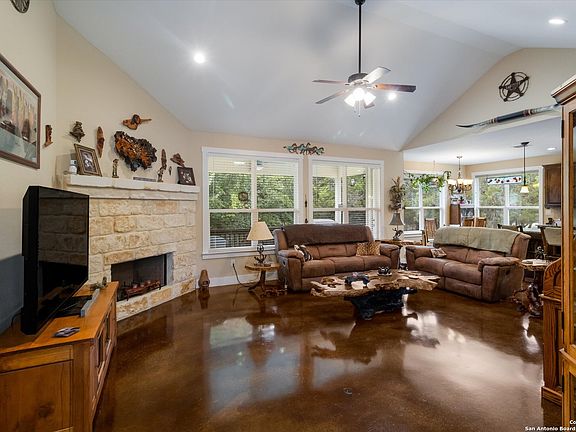 Beautifully Maintained 3/2/2 Home on Nearly an Acre - Prime Location! This lovingly cared-for home offers the perfect blend of comfort, convenience, and low-maintenance living. Situated on a spacious cul-de-sac lot just under an acre, this 3-bedroom, 2-bathroom, 2-car garage home features stained concrete floors throughout, high ceilings, and custom cabinetry - combining durability with style. Enjoy the ease of single-story living with an open layout designed for everyday comfort and entertaining. The property includes dedicated RV and boat storage, making it ideal for outdoor enthusiasts. Located within walking distance to the local high school and just minutes from shopping, dining, and recreational activities. With easy access to New Braunfels, San Antonio, Wimberley, and San Marcos, you'll love the central location that doesn't sacrifice space or privacy. Some furnishings are negotiable - making this move-in-ready home even more appealing!