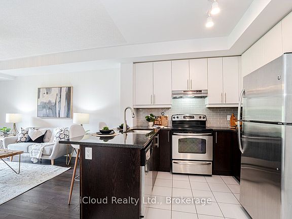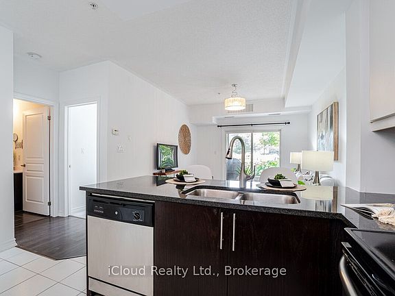 Well Maintained and Dazzling One Bedroom Unit !! Features 9ft Ceilings and Upgraded 1" Granite Counters with Breakfast Bar, Cabinet Door Hardware, White (Upper) and Espresso (Lower) Cabinets, Stainless Steel Appliances, Ensuite Laundry, Large Ground Level Walk-Out Balcony! New Tile Backsplash, One Underground Parking Space, One Locker.