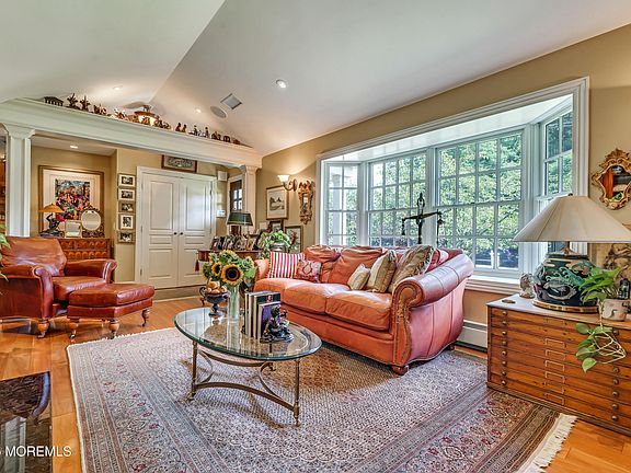 Impeccably Crafted Home showcases only the finest details throughout! The property & its lush gardens offer a serene retreat that is sure to impress. The private backyard features a stunning inground pool with a charming cabana, a paver patio ideal for outdoor grilling and entertaining. Inside you will find 3 spacious bedrooms & 2.5 beautifully updated baths. The foyer is highlighted by an inlaid marble runner, opens to a light-filled living room complete with a gas fireplace & vaulted ceilings. The eat-in kitchen is a chef's dream, outfitted with top of the line professional appliances, gleaming marble countertops & radiant heat beneath travertine floors. Conveniently located in the West End section of Long Branch near beaches, shops and restaurants. Just off the kitchen, an inviting English-style patio offers the perfect spot for a morning breakfast. The expansive family room flows effortlessly into the backyard, making it an ideal space for both casual living & entertaining, complemented by a gracious dining area. A versatile lower-level den could easily be converted into a 4th bedroom if desired. Additional highlights include dual-zone central air conditioning for year-round comfort.