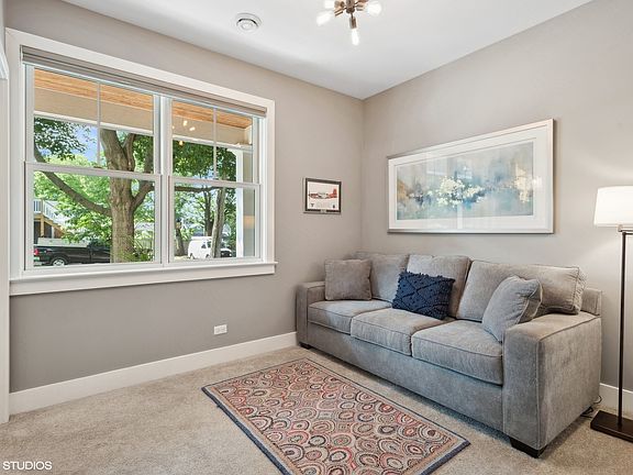 Location, Location, Location! Welcome to your luxurious townhome in the heart of downtown St. Charles! Built in 2018, with over 2,100 sq ft, this home feels brand new, boasting a wealth of upgrades throughout. As you enter through the inviting covered front porch, you'll be greeted by a spacious foyer with coat closet. This level features a versatile den or third bedroom complete with a full bath. Make your way to the main level, where an open floor plan creates the perfect space for entertaining. The expansive kitchen seamlessly flows into the dining and living areas, all featuring stunning hardwood floors. Cook like a chef in the gorgeous kitchen, featuring white cabinetry, stainless steel appliances, a massive 8-foot island, and quartz countertops. You'll also love the additional bar area with a wine refrigerator and glass-front cabinets. A large walk-in pantry offers ample storage and can double as a cozy workspace. The spacious living room features a gas fireplace with newly finished tile surround, adding warmth and style. Step out onto the long deck off the dining area, where there's plenty of room to relax and grill. Upstairs, the second level offers a luxurious primary suite with hardwood floors, dual walk-in closets with high-end organizers, and a cozy sitting area. The private bath is a spa-like retreat, complete with a walk-in marble shower, double sink vanity, and a separate soaking tub. The second bedroom also includes an ensuite full bath. Convenience is key, and the second level's laundry room, equipped with plenty of storage, makes daily chores a breeze. Elegant bookcases with cabinets add charm to the landing. The heated, two-car attached garage offers additional storage, with a custom-built "slat wall" to hang outdoor tools, plus a full wall of shelving for everything else. This highly desirable location offers the best of in-town living, with easy access to the Geneva Metra train station, the scenic Fox River bike paths, public library and a vibrant downtown filled with restaurants & specialty stores. Coming in 2025, a Whole Foods grocery store will be just a 5-minute walk away. Don't miss this opportunity to experience the luxury and convenience of downtown living in St. Charles!