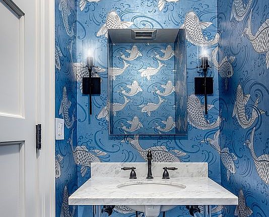 Dining area with fireplaceWasher and dryerStainless steel appliancesExtra large tubMarble floorsLuxury marble bathroomElegant tiled walls