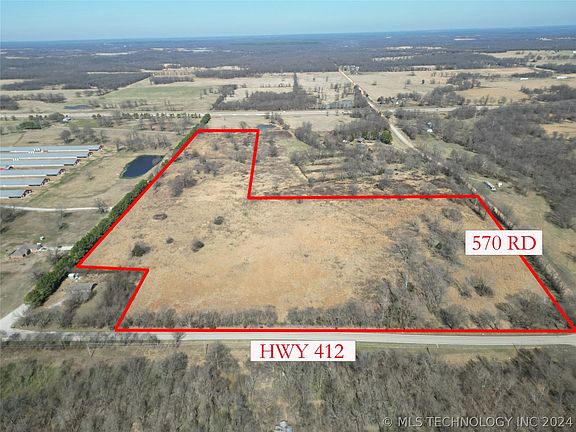 Acreage right on the highway!  This beautiful 29+/- acres could be transformed into your dream property.  Beautiful building sites, pond, pastureland, and a few trees.  This acreage lies along HWY 412 and County Road 570 (entrance could be made from either.)  Land has been survey; stakes in the ground.  Property is partially fenced (need cross fence at survey lines.)  Less than 5 miles to little Kansas.  15 minutes to Siloam Springs, AR.  Great location with tons of potential.