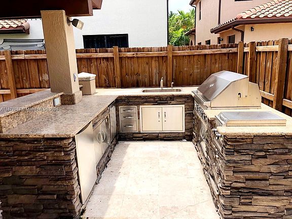 Breakfast barBuilt-in bbq areaStainless steel appliancesCovered patio with pavers