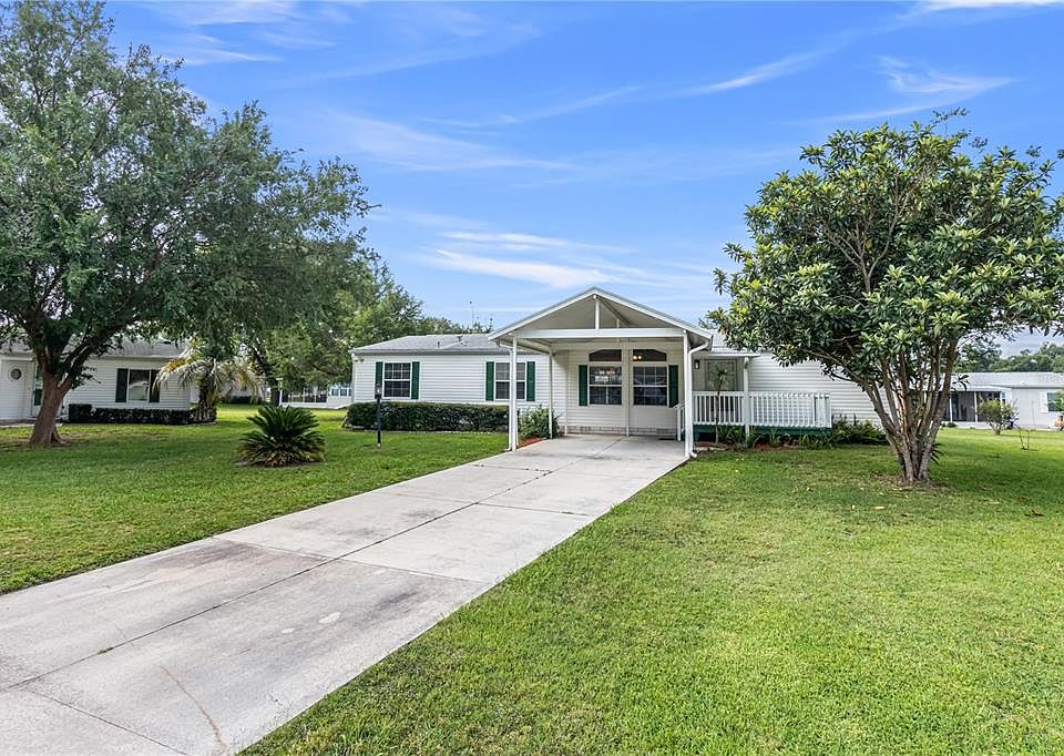 One or more photo(s) has been virtually staged. What a perfect place to call HOME! Welcome to the Falls of Ocala- a 55+ community where you own your own .18 acre lot! Gorgeous luxury vinyl plank floors, fresh interior paint, newer light fixtures and fans, a 2019 roof, air duct cleaning, and a pressure wash make for easy living in The Falls. Turn into your neighborhood, greeted by a waterfall- views of quintessential Ocala farmland across the street. The landscaped entry with waterfall & large Oaks on a paved road makes for lovely accessibility to your new home. Your spacious and well-kept home sits on a cul-de-sac with concrete parking under an oversized carport out front. Step inside to a split floor plan; 1,800 square feet of open-concept living space, high ceilings, and a wood-burning fireplace. The primary bedroom is to your right, can easily fit a King-sized bed, and boasts a 12x9 bonus space/ office room. Set up your craft room, work from home, or tinker under AC here! The large ensuite bathroom offers double sinks, both a step-in shower and soaker tub, and a huge walk-in closet. The kitchen sits at the center of the home and opens to the dining room and living room; 2 equally-sized guest bedrooms, and an indoor laundry room to your left. Sliding glass doors off of the dining room provide access to the 3 outdoor spaces sitting on concrete- a screened-in porch to relax, a place to grill/garden, and an enclosed shed with electricity! The low HOA of $200 a month includes yard mowing & maintenance, water, sewer, use of community pool, sauna, clubhouse with exercise room, and game area/ shuffleboards/ fire pit. Plus, the Boat & RV yard is located near the clubhouse. Utilities include SECO electric company & Spectrum Internet. Located just off State Road 40, across the street from green pastures, located near the Ocala Airport, minutes from I-75, State Road 200, and the World Equestrian Center. Enjoy BIG VALUE and EASY LIVING so close to everything- move right in and start having fun in Ocala, Florida!