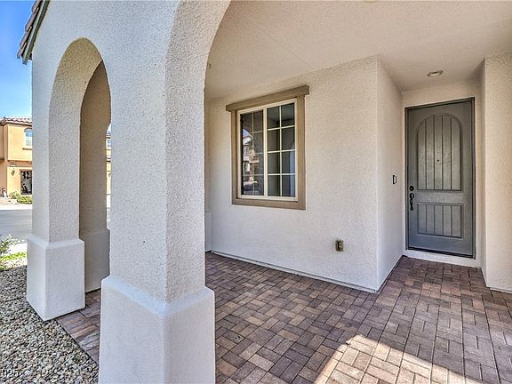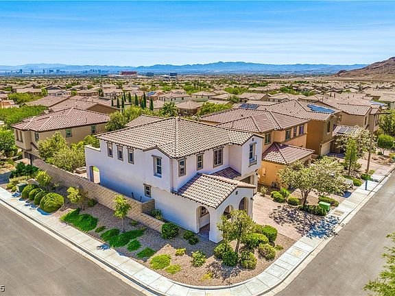 Large corner lot home in gated Andorra-Castille-Summerlin West. The home offers 4 beds, a versatile loft & 2.5 baths. Freshly painted interiors & abundant natural light create a warm atmosphere thruout. The kitchen features a large island, SS dbl ovens, gas cooktop, walk-in pantry, wth a dinette area; opening to the expansive family rm & soaring vaulted ceilings - perfect for everyday living & entertaininG. A flexible downstairs bed/office provides options for guests or work-from-home. Upstairs primary suite boasts a private balcony, walk-in closet, luxurious bath wth dual sinks, a separate soaking tub & shower. 2 addl bedrooms plus a spacious loft complete the 2nd level. The private backyard wth lrg covered patio, low-maintenance turf, mature landscaping & built-in fire pit—ideal for lounging or entertaining under the stars. All just minutes from Vassiliadis Elementary, parks, shopping & dining. SELLER OFFERING $10K CREDIT AT CLOSE OF ESCROW FOR FLOORING/CLOSING COSTS; BUYERS CHOICE!