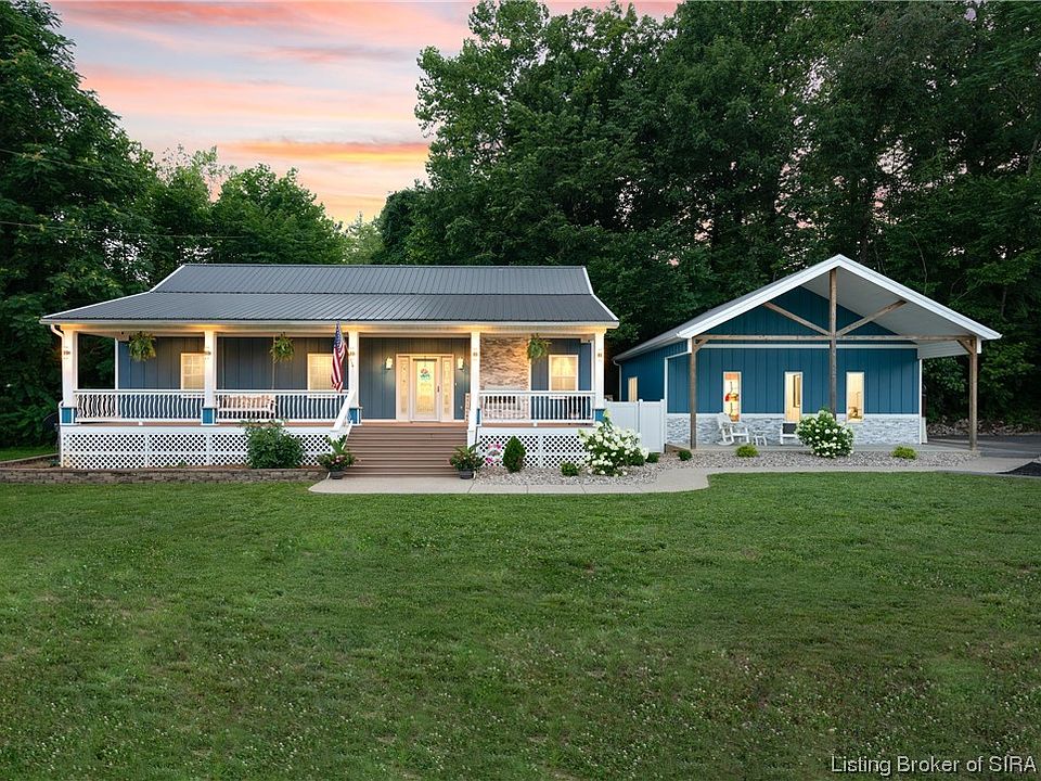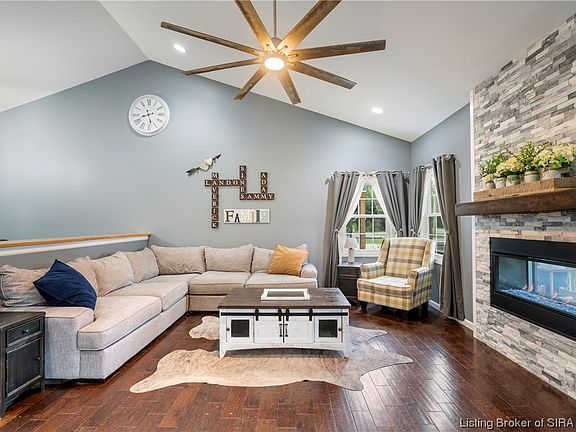 If you are looking for a custom home on a spacious .8 acre in beautiful Milltown, then this home is the perfect option for you. From the blacktop driveway, curb edging compliments the landscaping, tile work to the convenience features throughout the home, you will feel spoiled by the attention to detail. The exterior of the home is constructed out of hardy board, which is a composite material that is weather resistant and durable. This material will ensure that your home is built to last and can withstand all types of weather. Spacious porches with composite decking provide plenty of outdoor space for you to enjoy, and the dual sided fireplace adds a touch of sophistication. The interior of the home also includes many custom features and details. The kitchen is equipped with stainless steel appliances and custom tile flooring. There is also a large living and dining area with custom lighting fixtures, a cozy fireplace, valued and 9-foot ceiling throughout. The bedrooms are spacious and comfortable, and the bathrooms are equipped with premium fixtures and custom tile work. The home also features a large garage plus carport with enough space to store all of your vehicles and other belongings. There are also plenty of convenience features such as motion on/off lighting in the garage. PLUS halfcourt basketball! Located in Crawford Co. but close to North Harrison School District. If you are looking for a custom home in a great location, then this is the perfect option for you.