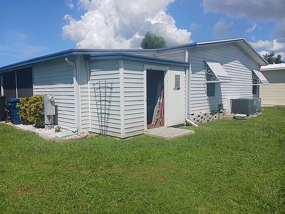 This lovely 1991 (26x51, 1,326 sq. ft.) Fleetwood Meri manufactured home is located in Country Lakes Village 1, a dog friendly, 55+ (second occupant can be 45+) gated community. It is priced to sell!! This home is tastefully decorated and sold partially furnished (most furnishing will stay). It has been meticulously maintained by it's previous owners. It has a new roof (2021), new laminate flooring throughout (2020), and a new air conditioner (2020). This unit has a unique separate powder room and linen area off the guest bathroom. Kitchen has been completely updated with new cabinets, countertops, backsplash, sink, appliances and a large center island with electric plug-ins convenienly located. Both bathrooms have been completely updated with new showers, sinks and commodes. This is the ultimate in "open concept living" and the cathedral ceilings only enhance that feeling. There is a x-tra large screen porch under the carport and and a second shed with a private entrance in the back to hold all your gardening tools. The main shed has the washer, dryer, and set tub with lots of space for extra supplies and tools. The whole outside has been beautifully landscaped. Driveway easily holds two vehicles in tandem. Lot rent is $1353 per mo and includes everything except FPL Electric and Manatee Utilities (averages about another $150 per mo). Cheaper than a two bedroom apartment in this area. Monthly lot rent includes: Lawn Care Ad Valorem Taxes Internet (For comparison, these 3 items are not always included in other communities) Sheriff Patrol daily On-site Management & Maintenance On-site Fitness Center Upkeep of all common areas & amenities. AMENITIES: It is a golf cart & pet friendly community with a heated community pool, a hot tub, a state-of-the-art fitness center, and library. Do not forget the fishing pier. Always a full calendar of things to do with golf cart parades, entertainment, dinners, dances, cards and games. Enjoy year around tropical weather, birds & flowers. Live where everyone else goes on vacation! PET FRIENDLY: 2 per home; max 45 lbs each; non-aggressive breeds. There is a dog park for our canine friends. LOCATION: Midway between Tampa & Sarasota & just minutes from the interstate in Manatee County. Easy access to airports in Tampa, St. Pete & Sarasota. The Gulf Islands of Anna Maria, Longboat Key, Lido Key & Siesta Key are all less than 1 hour drive where you can enjoy dolphins, sunsets & life at the beach! Don't forget that the big theme parks are only about 100 miles away! NEARBY: Dining: Waterfront Casual & Fine Dining (seafood & local catch of the day) & sightseeing dinner cruises Nightlife & Live Entertainment: Tiki Bars: Whiskey Joe's, Woody's River Roo, Caddy's on the River Shopping: Ellenton Outlet Mall, University Town Center Mall, Costco, antique & thrift stores Fishing & Boating: Anna Maria Island & Sky Way Bridge (State Park) Fishing Piers. Fishing, shelling & dolphin charters, parasailing & jet ski rentals. ATTRACTIONS: Over 7 miles of free public, sugar sand beaches, Mote Aquarium, Science & Nature Museum, Railroad Museum, Performing Arts Theaters, Golf Courses & Country Clubs.