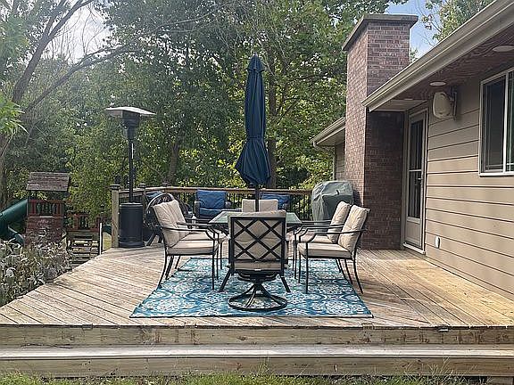 *A large front yard with a cozy front porch and a large back deck overlooking a spacious yard and scenic wooded area. Perfect for relaxing or entertaining.