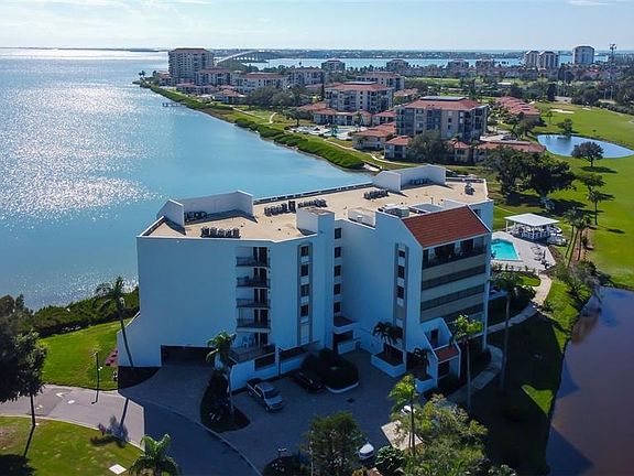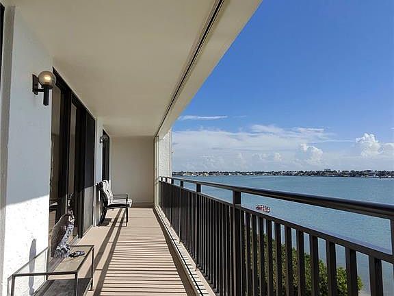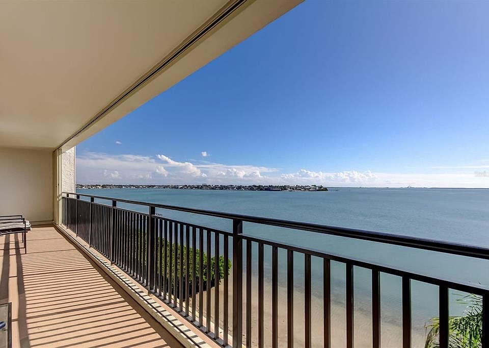 This is what dreams are made of! Elegant mid-rise waterfront condo on Boca Ciega Bay, offering a breathtaking 4th floor water view that rarely comes available. The unit features a spacious floor plan with 1,425 square feet of heated living space, plus an additional 200 square feet of outdoor balcony space overlooking the stunning Boca Ciega Bay. You’ll never need a vacation when paradise is your primary residence! This split-floor plan condo features one expansive, continuous 40' x 5' balcony that spans the entire unit and is accessible from every room. This is where you’ll spend most of your time, enjoying morning coffee, reading your favorite book, and watching the sunlight dance across the water. I promise, this view will never get old! The split floor plan offers the privacy homeowners appreciate when hosting friends or family, while the 1,425 square feet of living space creates an atmosphere that many condos simply can’t match. Hurricane shutters span the entire porch for added peace of mind. Amenities include a small fitness room for residents, a community pool and spa, and designated under-building parking to protect your vehicle from the elements. This location places you just a short drive from all the destinations everyone loves, Clearwater Beach, Downtown St. Petersburg, Pass-A-Grille Beach, and Fort De Soto. This is an opportunity to own a piece of paradise. A rare find that offers the chance to put your own personal touch on it, with the sky truly being the limit!