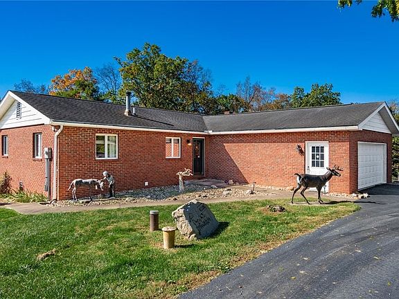 Here it is!! This property is more than you could imagine! With +/- 112 acres there is so much to offer. Nice brick home with 3 bedrooms and 3 full baths, 2 laundry rooms, large great room with a warm wood fireplace, and exceptional kitchen. The kitchen has Amish built cabinets, granite countertops and stainless steel appliances. Enjoy your mornings enjoying the 3 seasons room. Step outside to the outdoor covered patio. Enjoy the built in fireplace, and most of all the outdoor stone fire pizza oven. Don't foreget to collect all the buckeyes from the Buckeye Trees. Start out driving through the security gate to peace and quiet. The property offers a beautiful log cabin with so many options, living quarters, man cave, or a perfect she shed. Continue to the 35x80 horse barn and 64x88 indoor horse arena. Let's not stop there, an additional garage with 2 over head doors, large enough for your motorhome, boat, cars, or all the tools. Offers...electric, heat, insulated, and overhead loft. With an additional garage and numerous pole barns throughout the property, perfect for storing feed, hay, and farm equipment. This farm is completely fenced! You will also love the solar panels for savings on electric.