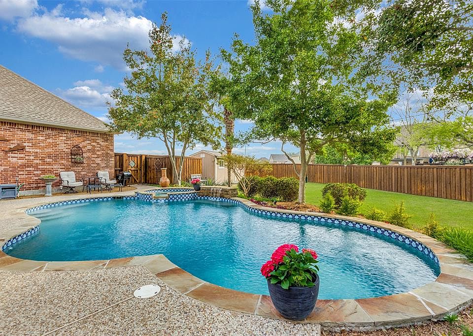 Enjoy incredible sunsets from the stunning Outdoor Oasis on oversized lot in Richardson Plano ISD! Spacious floor plan with 2 BD downstairs and 3 BD up built by Huntington Homes. Find 20 ft ceilings and a spiraling staircase at the entry, arches throughout, private study with high ceilings, built ins & double French Doors. Beautiful wood floors + recently replaced carpet, plantation shutters at front, 3 living spaces, and great storage. Formal living is currently being used as a billiards room, large game room up could easily be a 6th bedroom. Remodeled kitchen features a Jenn Air gas range with gorgeous granite counters, second oven, island, giant walk in pantry & convenient built in desk. Overlooking to pool, the elegant Primary Suite features a tray ceiling, bay window, jetted tub & frameless glass shower. Spectacular backyard paradise with beautiful pool, spa & waterfall, hot tub covered with pergola, custom lighting, large storage shed & huge grass area. Extended drive, Plano ISD 2022-05-16