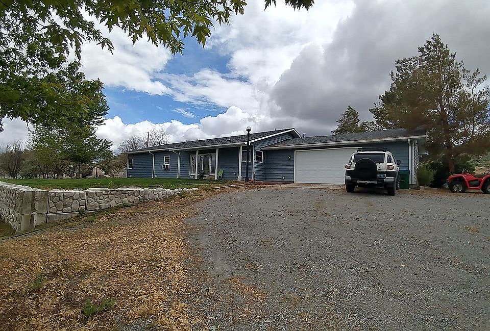 End of the road private setting, perimeter fenced and cross fenced, mature trees, three storage sheds, steel frame barn, frost free water hydrants, flag pole, covered back patio, front patio overlooks entire valley with views of Tule Peak & Painted Hills. Remodeled kitchen with granite tops, new ACS 48" commercial range and ACS 2 drawer dishwasher, hardwood floors, newly added in 2014 large master bedroom suite and walk-in closet with all new American made fixtures. Oversized two car garage with new garage door. Gated entrance can be closed for privacy.