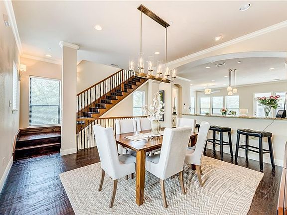 Absolutely Gorgeous, Fully updated 3 story upscale townhome, tons of upgraded features in the heart of The Shops at Legacy. Perfect for Executive living and Entertainment. Steps away from shops, restaurants & bars. An open family rm with REAL HAND SCRAPED HARDWOOD FLOORING, FP w-gas logs & access to a covered balcony. The island kit has 2 brkfast bars w-gas cktop, The dining area features a gorgeous chandelier & access to a Juliet balcony. The 3rd level master suite w-a private balcony & a lux bath w-a garden tub, his, her vanities seamless shower,walk-in closet. The 3rd bedroom has a private bath & walk-in closet. Updates: Quartz kitchen countertops, fresh paint, blinds, NEST, full security system,