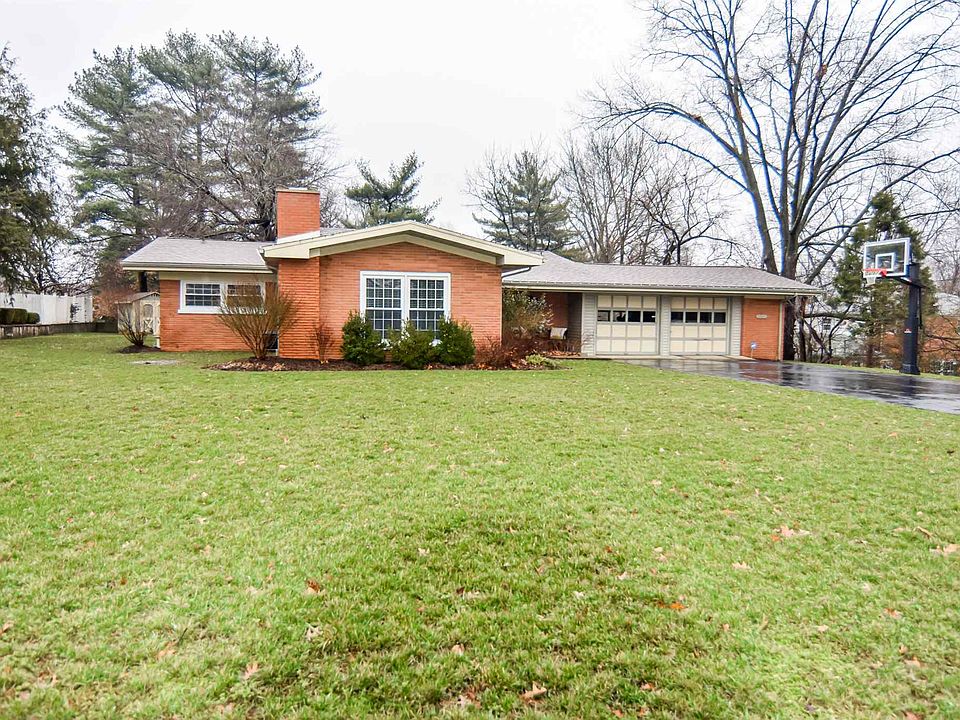Almost a half acre in town this excellent 3 bedroom 2 bath brick ranch home is located in a wonderful Northside neighborhood. If you are looking for a fantastic home with a little character and not the typical cookie cutter this home is for you! A spacious living and dining room features beautiful laminate wood floors, painted brick fireplace and built in buffet cabinet. New updated and painted trim package throughout the home. Another large family room off the living room offers doors to the back patio and lovely views of the large backyard. Eat in kitchen has painted cabinets, newer counter top, smooth range top, dishwasher, pantry and wall oven. Split bedroom floor plan. The master has 2 closets with built-ins and a small full bath with shower and pedestal sink. The other 2 bedrooms are on the opposite side of the home and have a full bath in-between. You'll love the 600 sq ft of basement that is semi- finished with drywall, can lights, new windows (no ceiling) and is currently used as functional living space. There is great storage space with 2 walk in closets inside the attached 2 car drive through garage that features driveways on both sides of the home. Beautiful yard and landscaping has been well manicured. You'll find this charming home is in a fantastic setting with yard barn, mature trees and vinyl split rail fence.