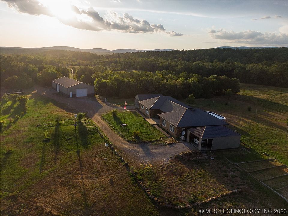 Seller is motivated giving a $10,000 allowance to buy points down with an acceptable offer. If you've dreamed of a view of the Kiamichi Mountains, this is the place for you! This custom-built home on 30 acres is nestled at the base of the Winding Stair Mountain National Forest adjoining on two sides. The design allows for two separate living quarters with adjoining entertaining space and options for additional bedrooms in this 3000 plus sq. ft. canvas; also features a radiant heated floor, geothermal heat, safe room, 2x6 walls, vaulted ceilings and a loft. Property has an above ground pool and a 40 x 80 insulated shop wired with 220V. So many possibilities for a family, amazing work from home location, vacation destination or an investment rental property; perfect for an RV park, 4-wheelers/utvs, horse back with trails behind the property. Come sit on the porch with this amazing view, watch the wildlife; deer, turkey and bear or cruise the Talimena Scenic Drive.