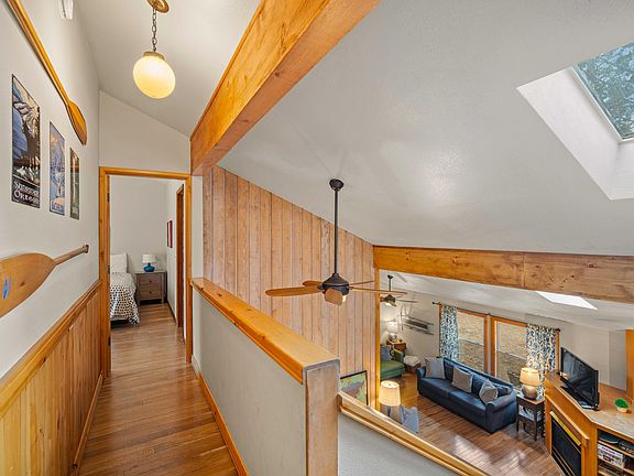 Upstairs, you'll find two primary suites, each with extra-large closets/sleeping areas for added flexibility. The open-concept great room offers vaulted ceilings, Wood beam,  a cozy gas fireplace, and plenty of natural light. Enjoy wood floors throughout the main level, updated countertops, and newer appliances for modern comfort.